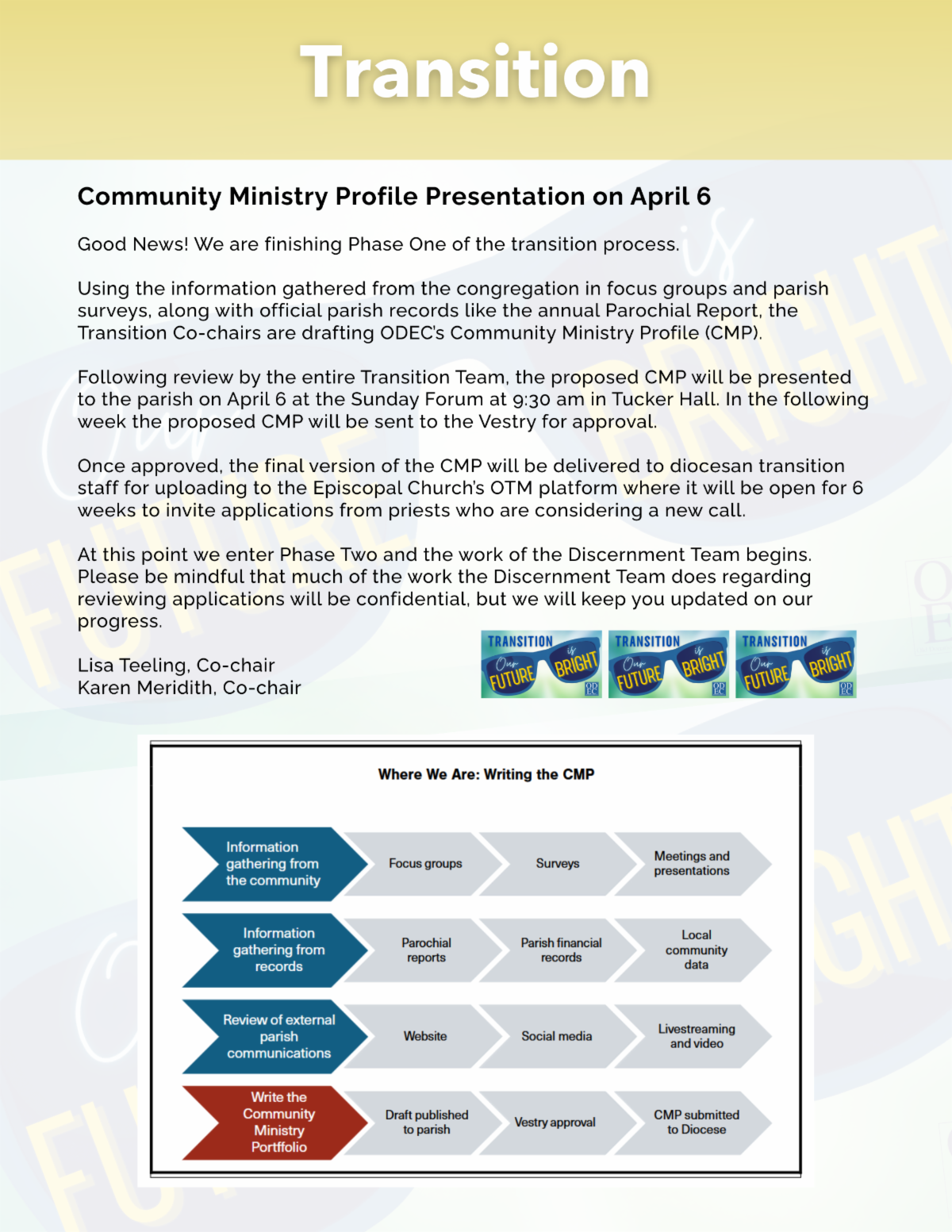 Yet here we are in the 21st Century, more vibrant than ever. God's Spirit continues to be our guide and our strength. God's hope keeps us looking forward. God's wisdom enables us to hold on to what is ancient, while always being relevant in today's world.